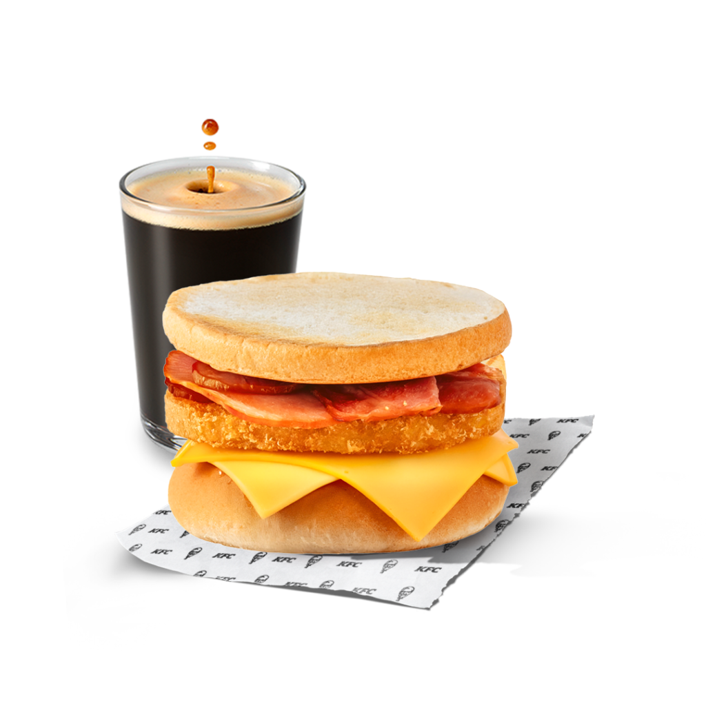Coffee + Deluxe Breakfast toast with bacon Coffee 200 ml + Toast with crispy hashbrown, lusciously melty double cheddar cheese and bacon INCLUDES Coffee Deluxe Breakfast toast with bacon INFO Allergens