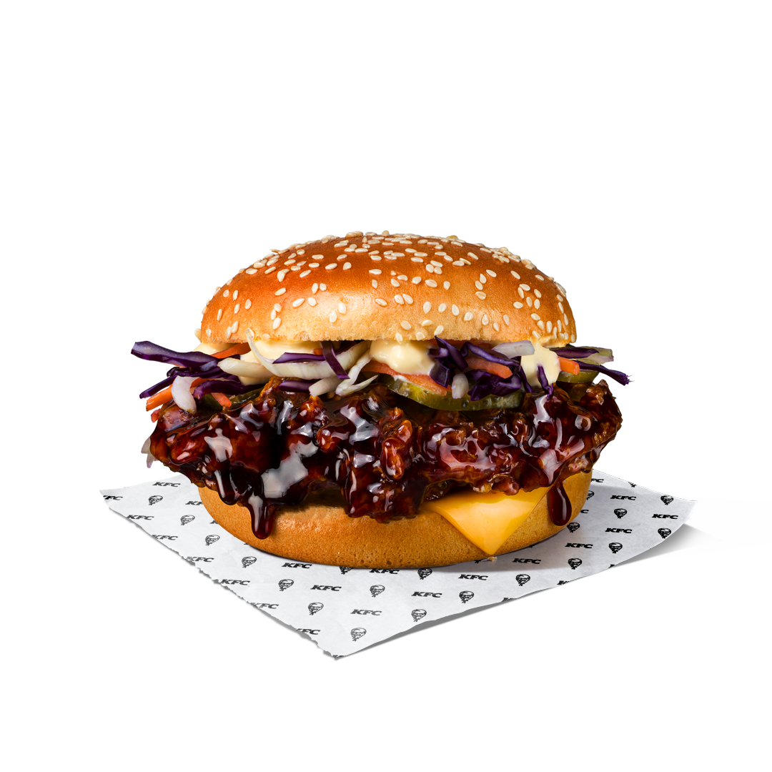 Pasniegts siltā un mīkstā maizītē, šis garšas piedzīvojums apvieno sulīgu vistas šķiņķīti oriģinālajā panējumā ar Korejiešu BBQ glazūru, apvienotu ar kāpostu salātiem, marinētiem gurķiem, Čedaras sieru un majonēzi. Intensīvs, pikanti salds un sulīgs – ideāls, ja meklē ko vairāk par klasiku. Oriģinālā recepte.